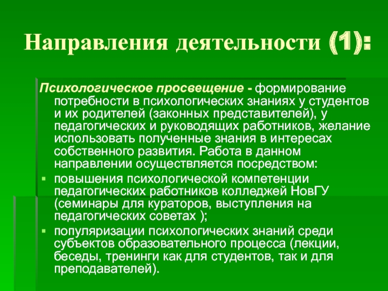 Слайд 4Направления деятельности (1):