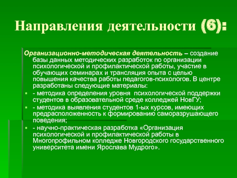 Слайд 14Направления деятельности (6):