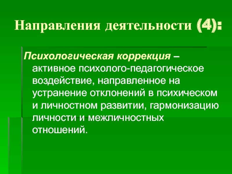 Психологическая коррекция – активное психолого-педагогическое воздействие, направленное на устранение