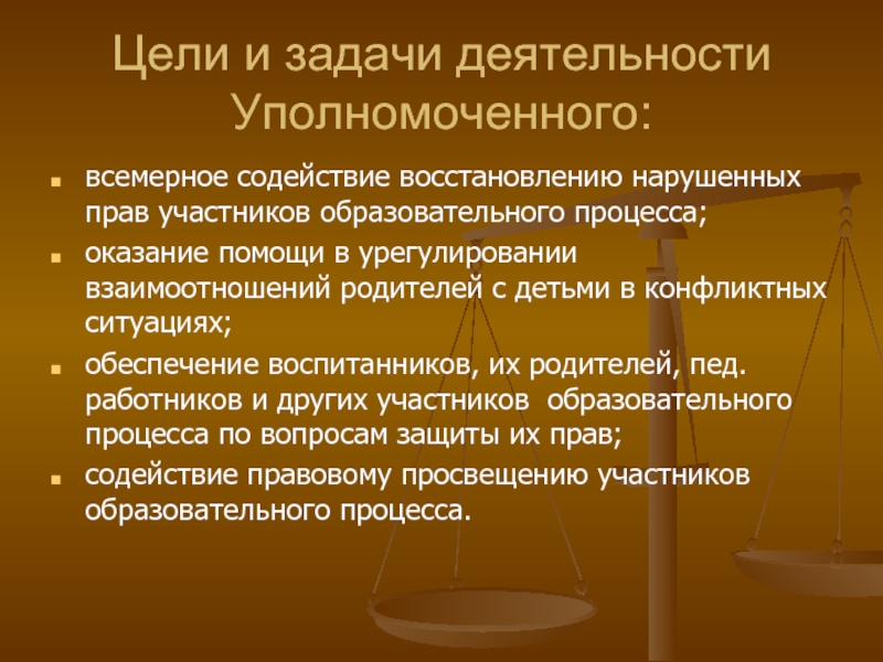 Слайд 2Цели и задачи деятельности Уполномоченного: