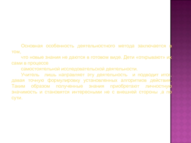 Слайд 4Основная особенность деятельностного метода заключается в том,