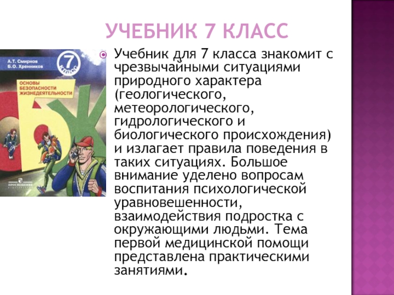 Учебник для 7 класса знакомит с чрезвычайными ситуациями природного