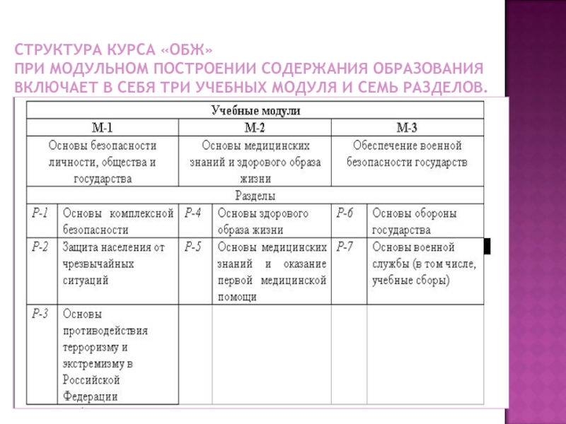 Слайд 16СТРУКТУРА КУРСА «ОБЖ»
