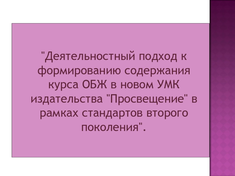 "Деятельностный подход к формированию содержания курса ОБЖ в новом УМК издательства "Просвещение" в рамках стандартов второго поколения".