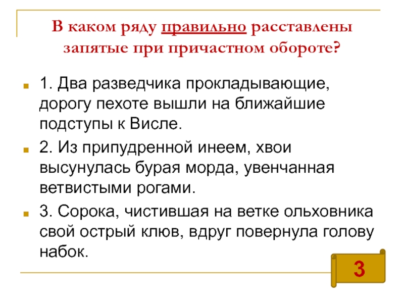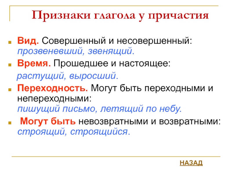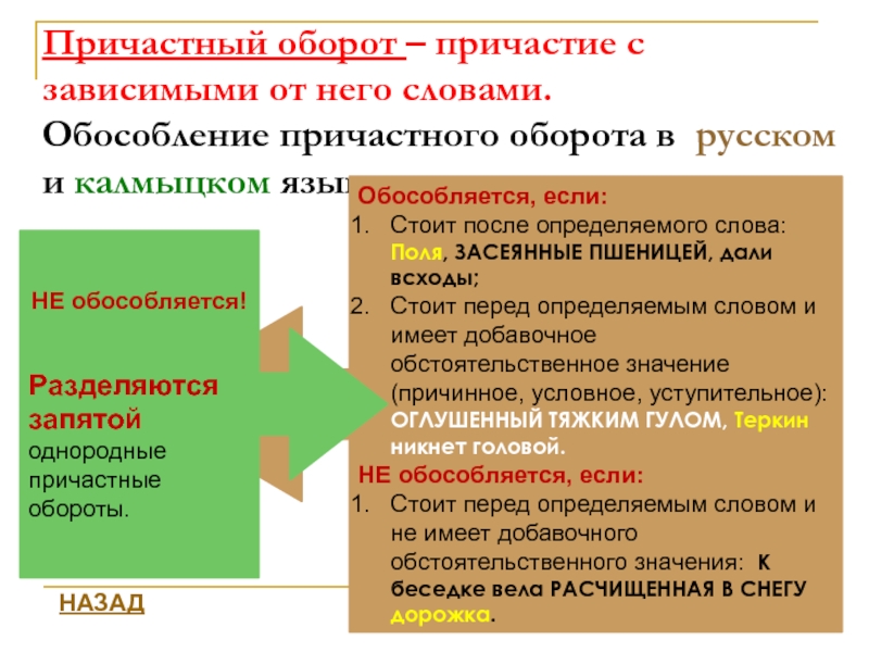 Стоит перед определяемым словом и имеет добавочное обстоятельственное значение (причинное, условное, уступительное): ОГЛУШЕННЫЙ ТЯЖКИМ ГУЛОМ, Теркин никнет головой.