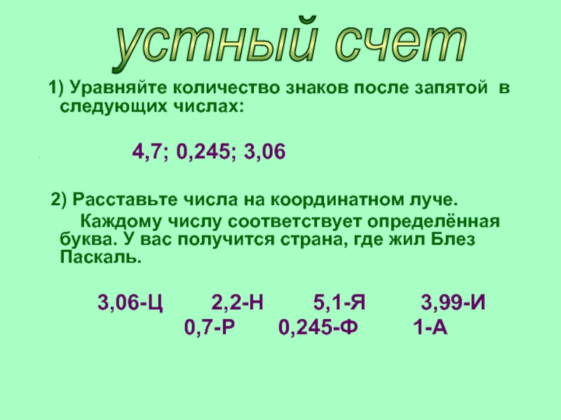 устный счет