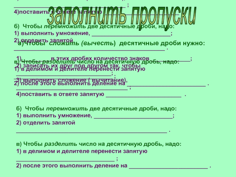 заполнить пропуски