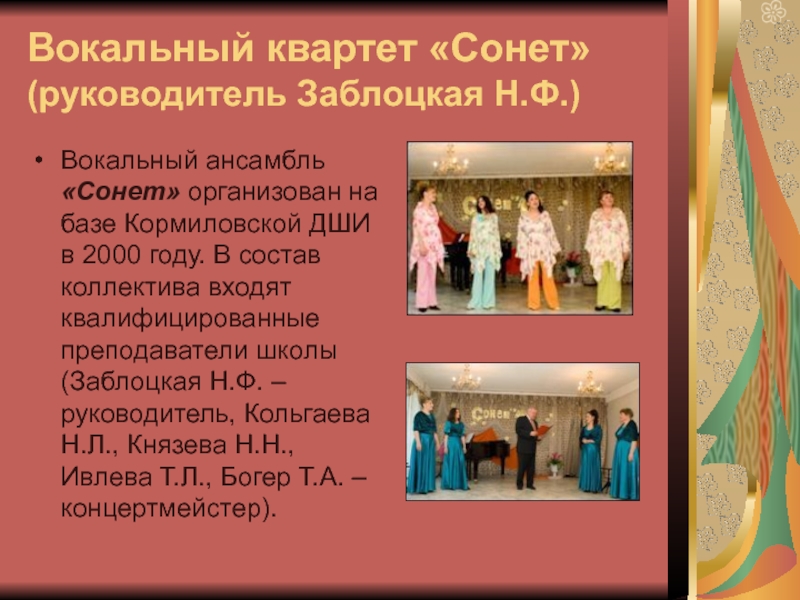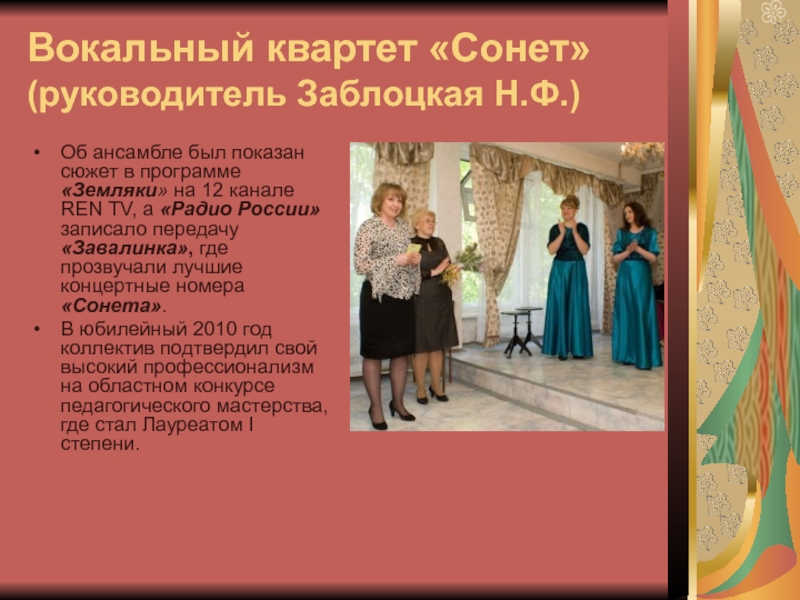 Слайд 6Вокальный квартет «Сонет»