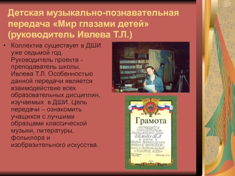 Слайд 10Детская музыкально-познавательная передача «Мир глазами детей»