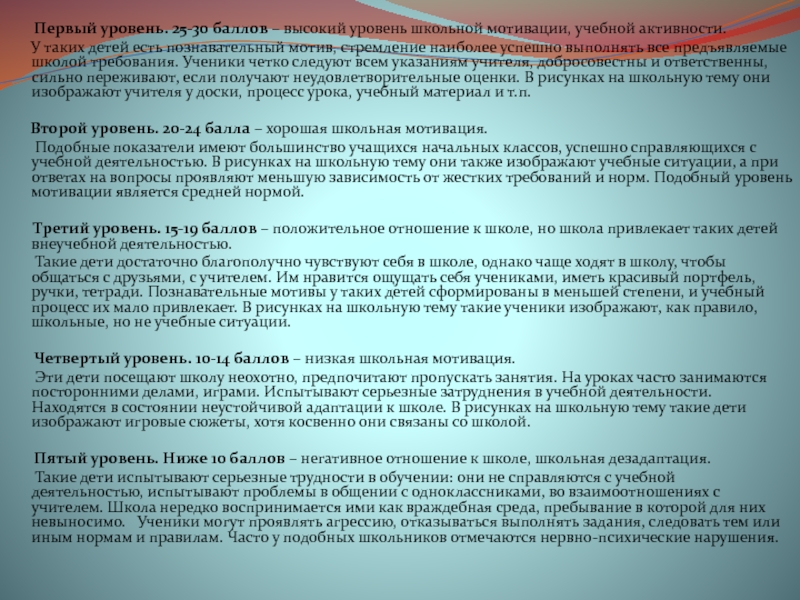 Второй уровень. 20-24 балла – хорошая школьная мотивация.