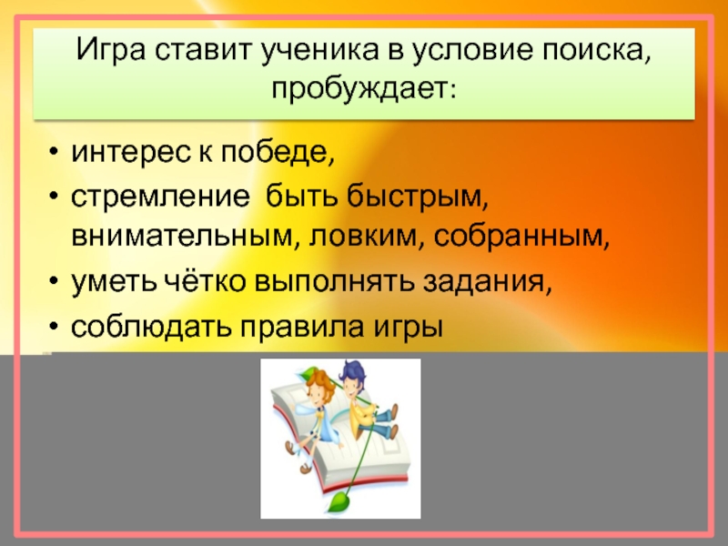 Слайд 6Игра ставит ученика в условие поиска, пробуждает:
