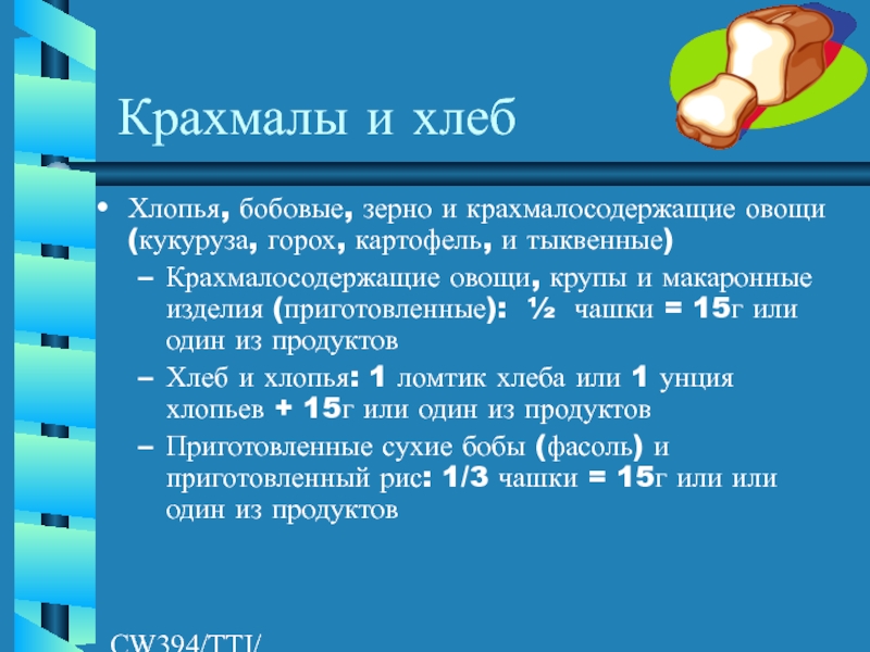 Хлеб и хлопья: 1 ломтик хлеба или 1 унция хлопьев + 15г или один из продуктов