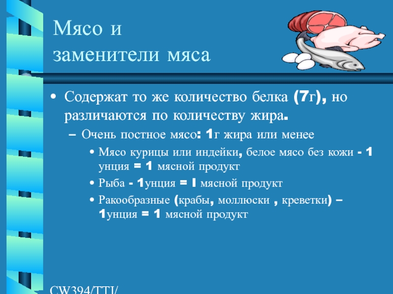 Ракообразные (крабы, моллюски , креветки) – 1унция = 1 мясной продукт