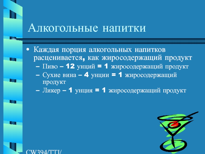 Каждая порция алкогольных напитков расценивается, как жиросодержащий продукт
