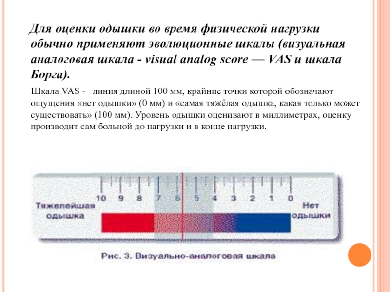 шкалы (визуальная аналоговая шкала - visual analog score — VAS и шкала Борга).