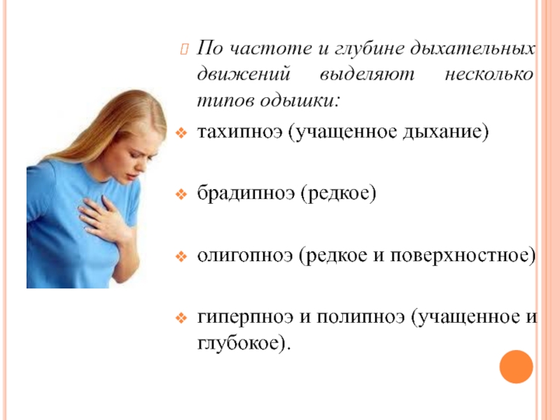 По частоте и глубине дыхательных движений выделяют несколько типов одышки: