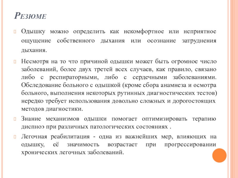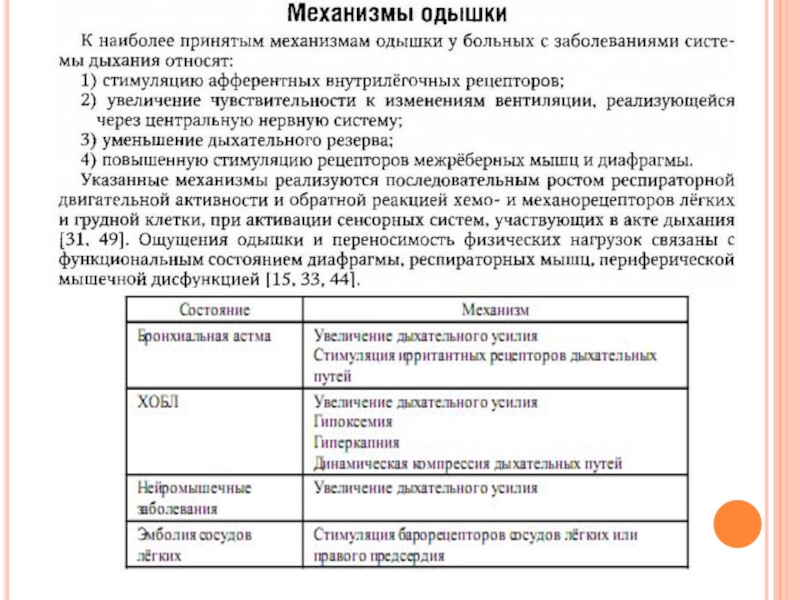 Знание механизмов одышки помогает оптимизировать терапию диспноэ при различных патологических состояниях .