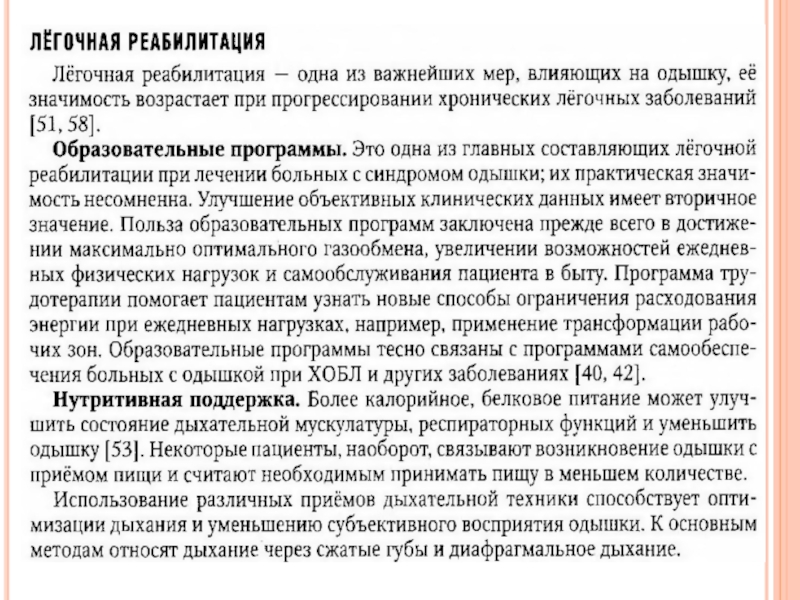 Легочная реабилитация - одна из важнейших мер, влияющих на одышку, её значимость возрастает при прогрессировании хронических легочных заболеваний.
