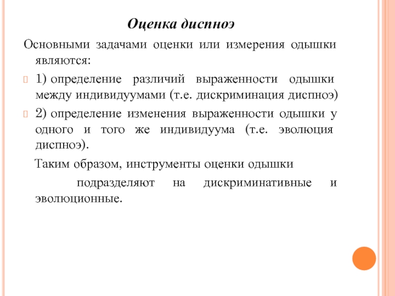 2) определение изменения выраженности одышки у одного и того же индивидуума (т.е. эволюция диспноэ).
