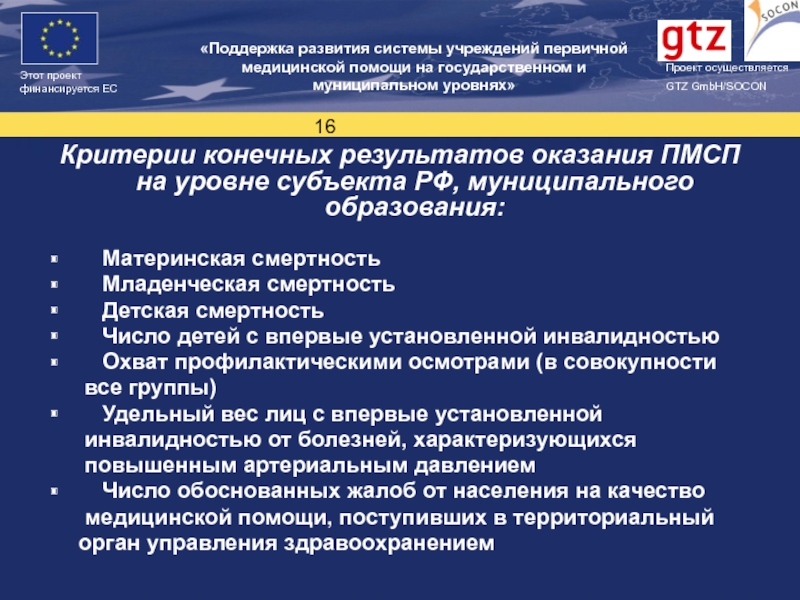 Критерии конечных результатов оказания ПМСП на уровне субъекта РФ, муниципального образования: