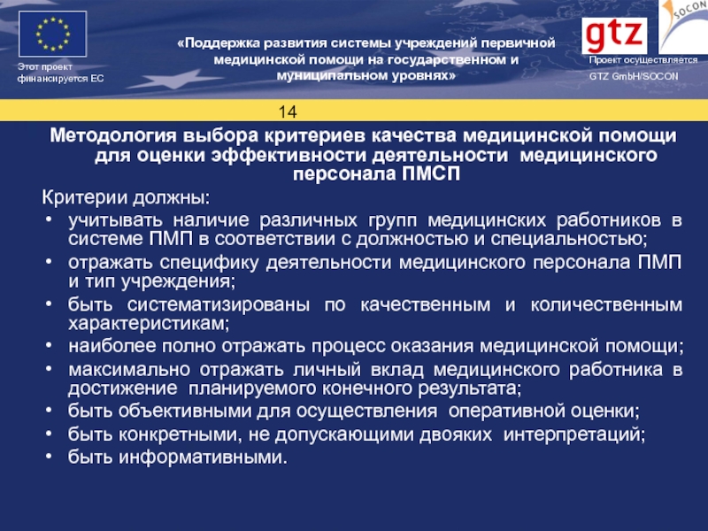 Примеры выбора критериев оценки эффективности деятельности медицинского персонала ПМП в соответствии с международным стандартом ISO -9000:2000