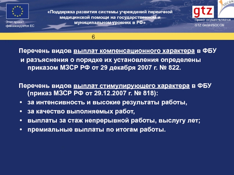 Перечень видов выплат стимулирующего характера в ФБУ (приказ МЗСР РФ от 29.12.2007 г. № 818):