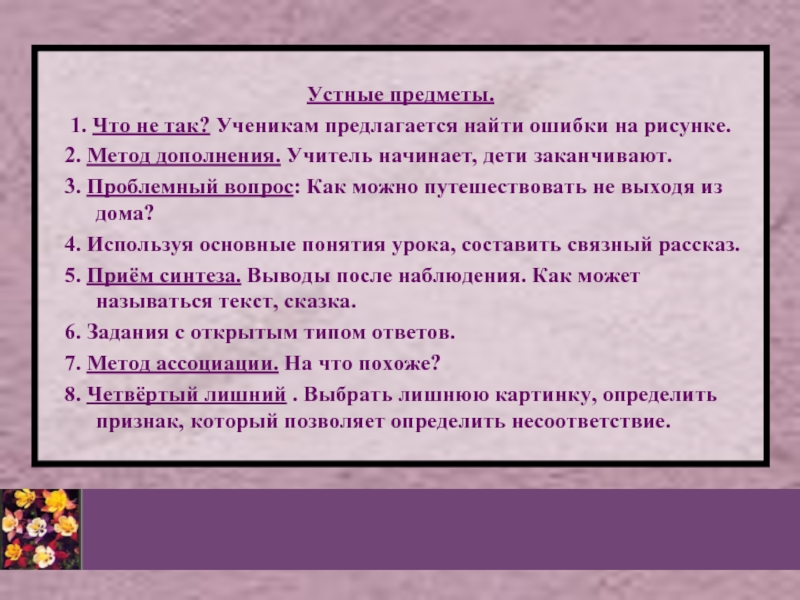 2. Метод дополнения. Учитель начинает, дети заканчивают.