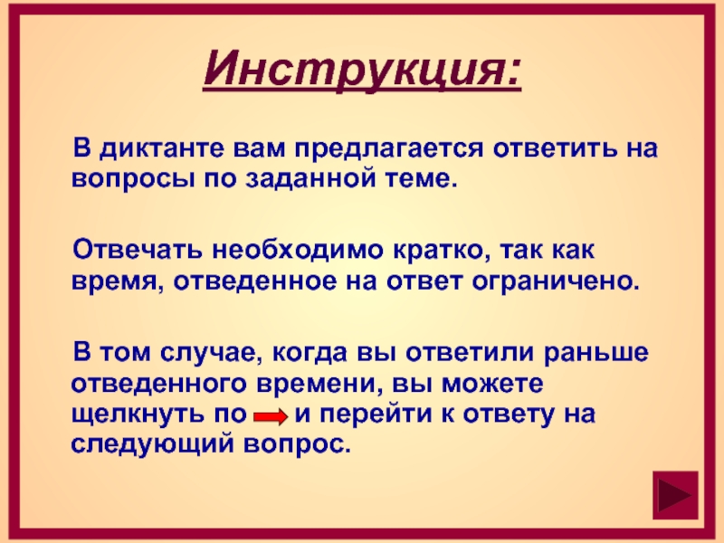 В диктанте вам предлагается ответить на вопросы по заданной теме.