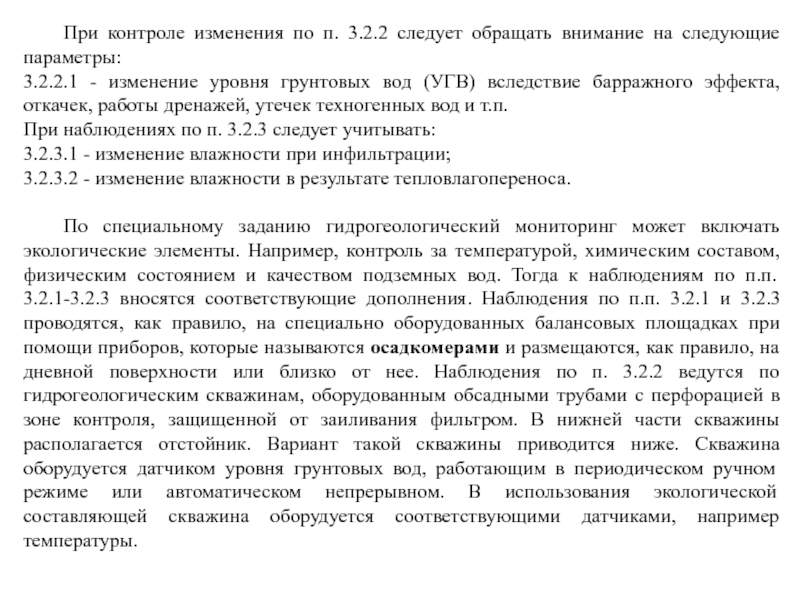 3.4.5 Техническое обеспечение наблюдений должно предусматривать предварительное проведение вспомогательных работ (бурение и обсадку скважин, оборудование реперной сети, наблюдательных постов и створов), установку и отладку аппаратуры и технических средств автоматической регистрации параметров.