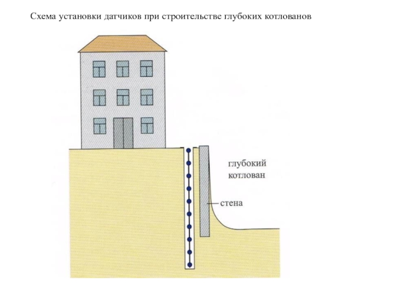 Слайд 4Схема установки датчиков при строительстве глубоких котлованов