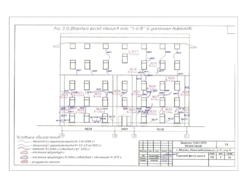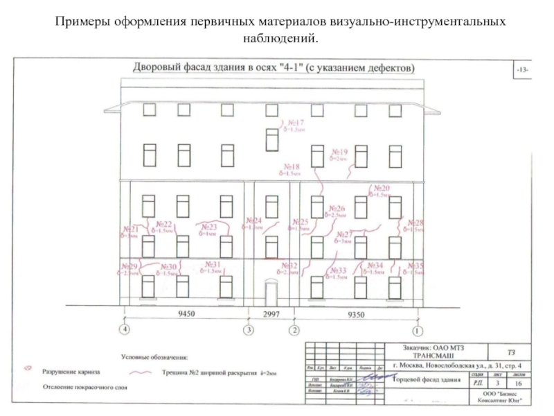 Слайд 2 Первый этап мониторинга деформационного состояния несущих конструкций здания предусматривает получение первоначальных