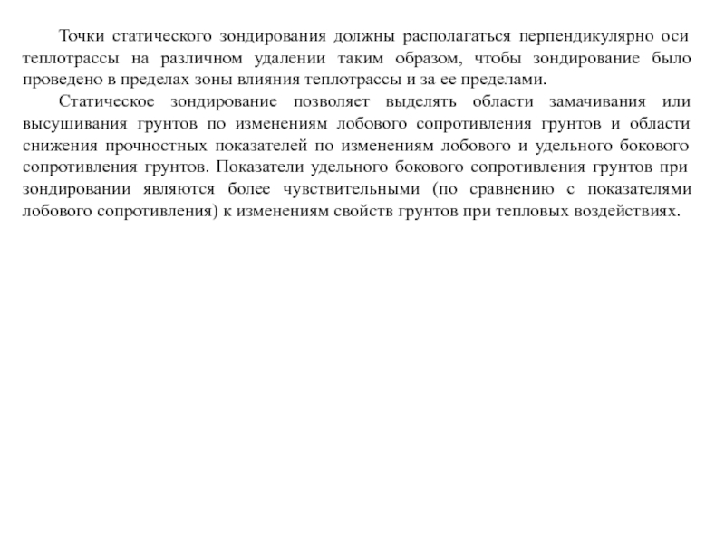 Слайд 13 Точки статического зондирования должны располагаться перпендикулярно оси теплотрассы на различном удалении