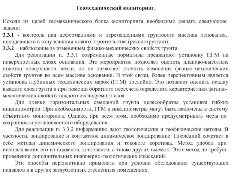 3.3.1 - контроль над деформациями и перемещениями грунтового массива основания, попадающего в зону влияния нового строительства (реконструкции);