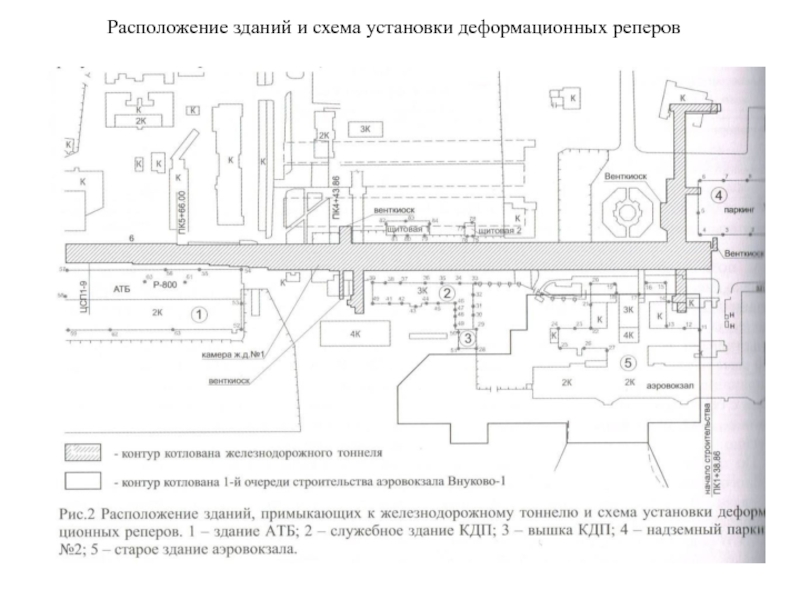 Слайд 15Расположение зданий и схема установки деформационных реперов