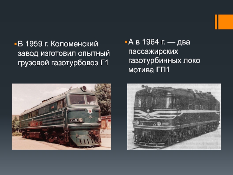 В 1959 г. Коломенский завод изготовил опытный грузовой газотурбовоз Г1