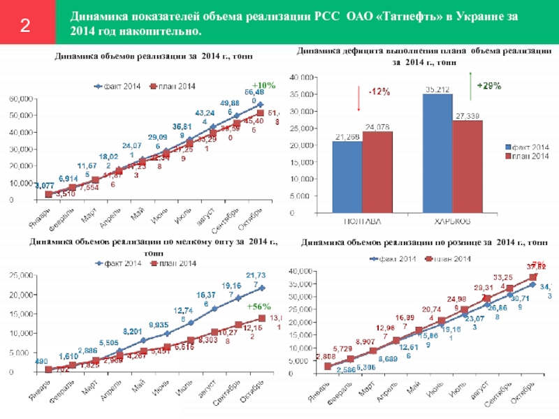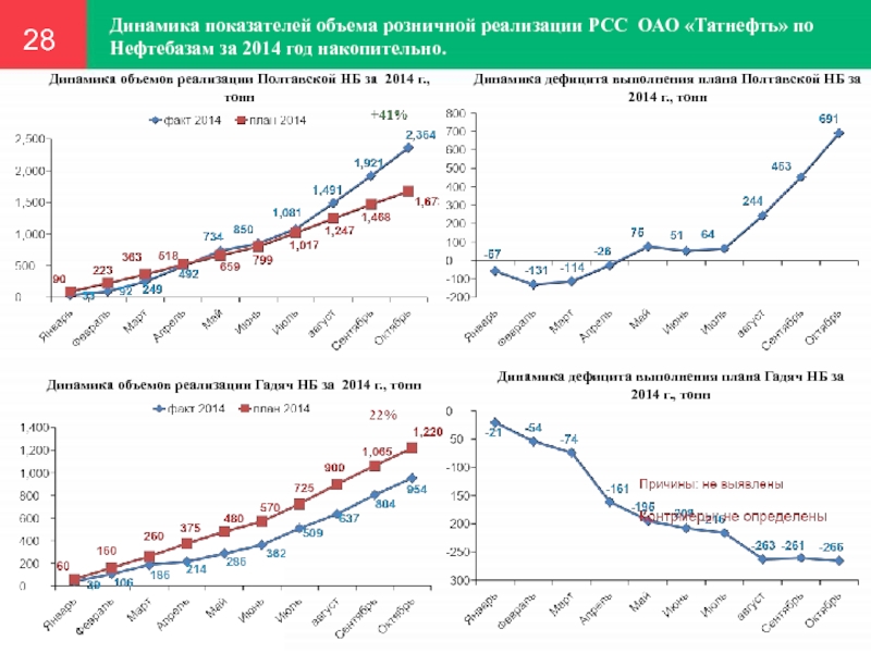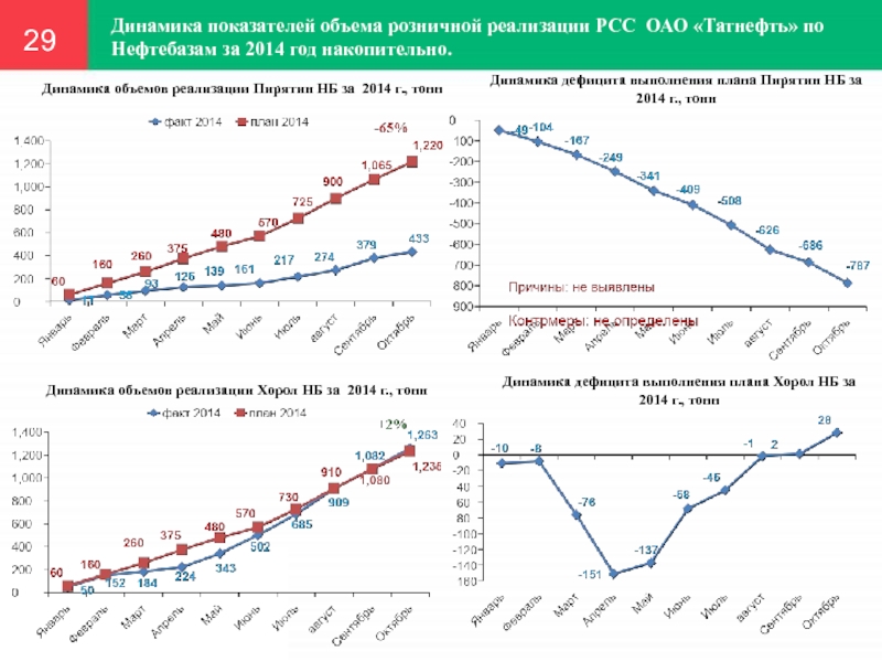 Динамика дефицита выполнения плана объема реализации за 2014 г., тонн
