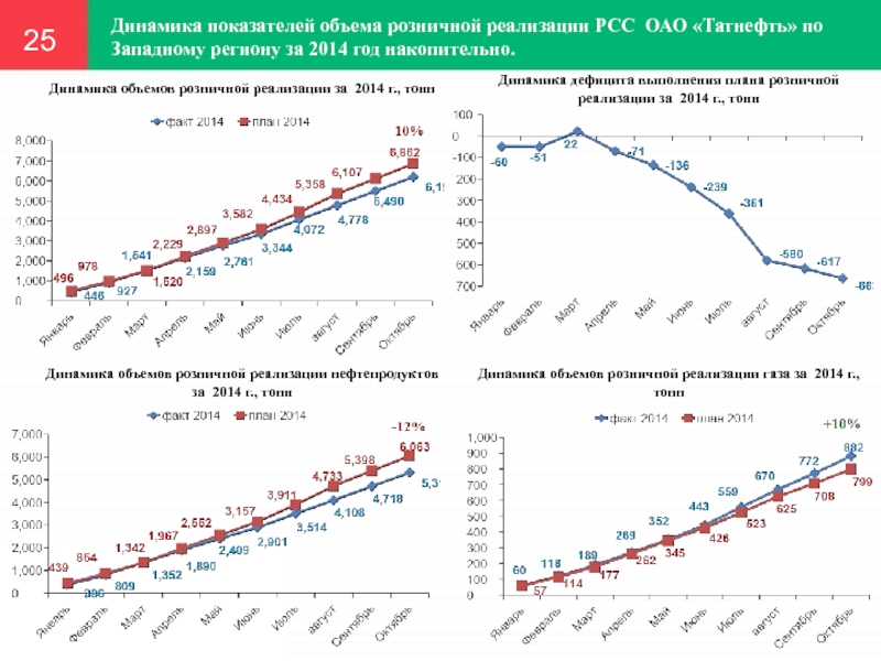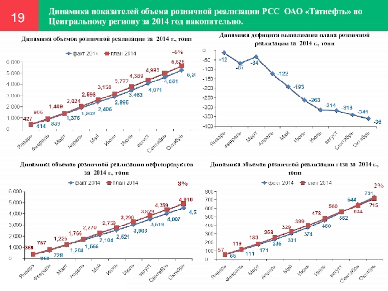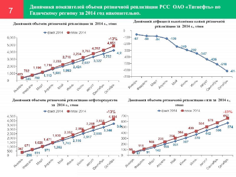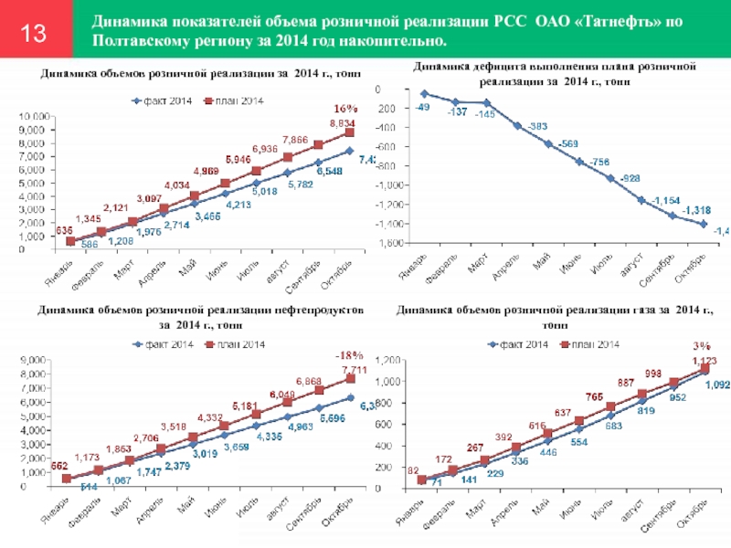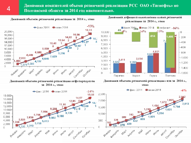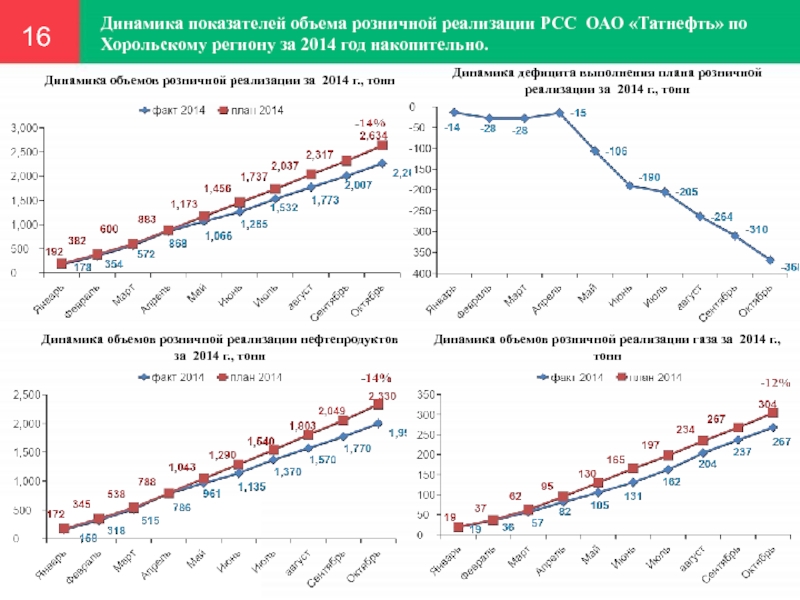 Динамика дефицита выполнения плана розничной реализации за 2014 г., тонн