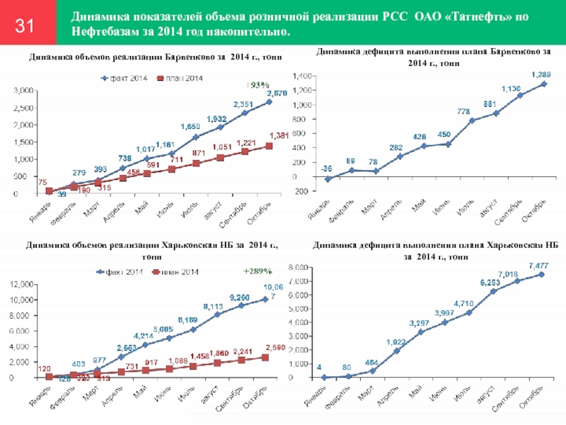 Динамика дефицита выполнения плана Барвенково за 2014 г., тонн