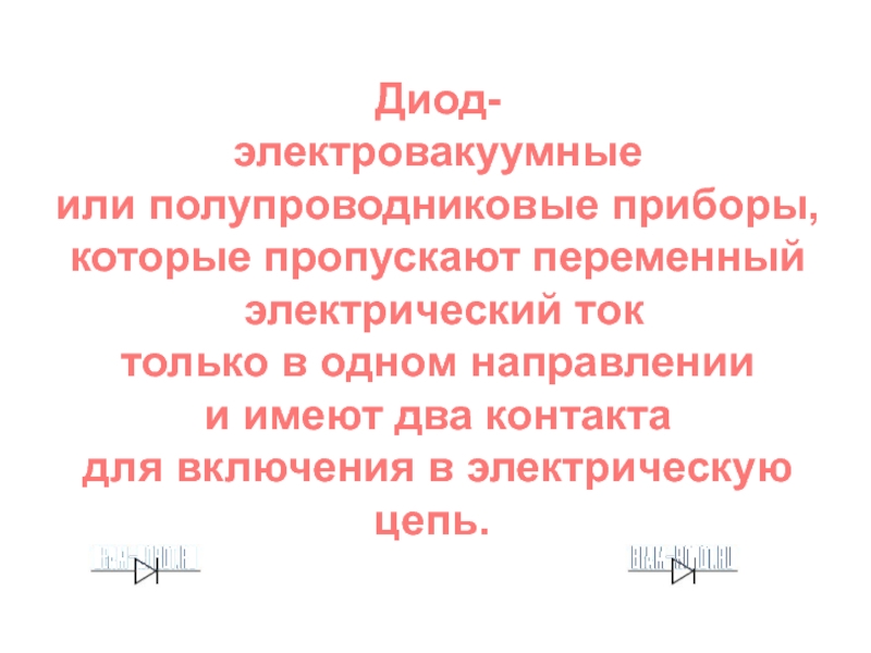 Слайд 3Диод имеет два контакта, которые называют анодом и катодом. При включении диода