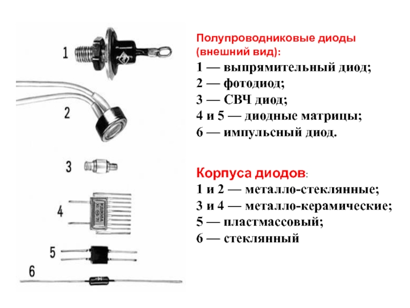 Слайд 14Полупроводниковые диоды (внешний вид):