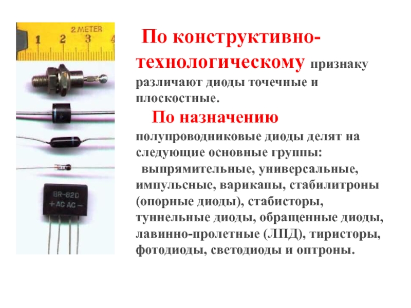 Слайд 6По конструктивно-технологическому признаку различают диоды точечные и плоскостные.
