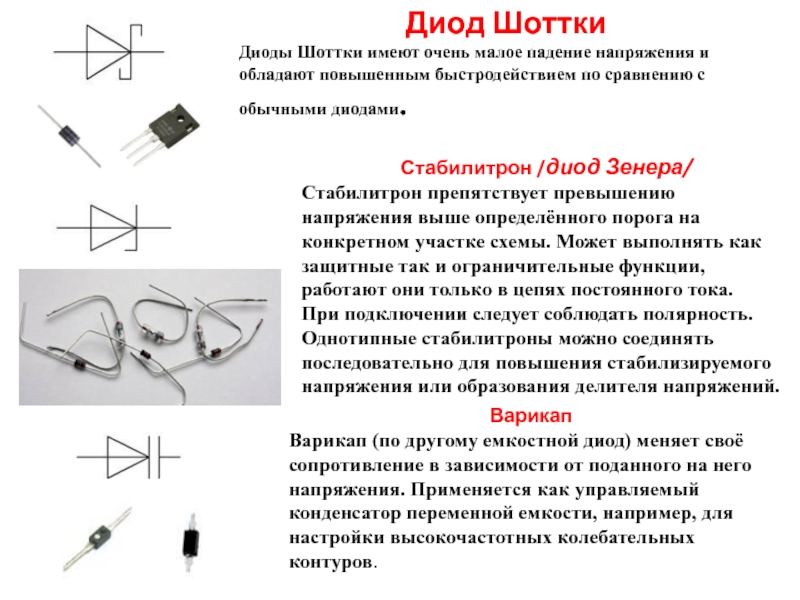 Диоды Шоттки имеют очень малое падение напряжения и обладают повышенным