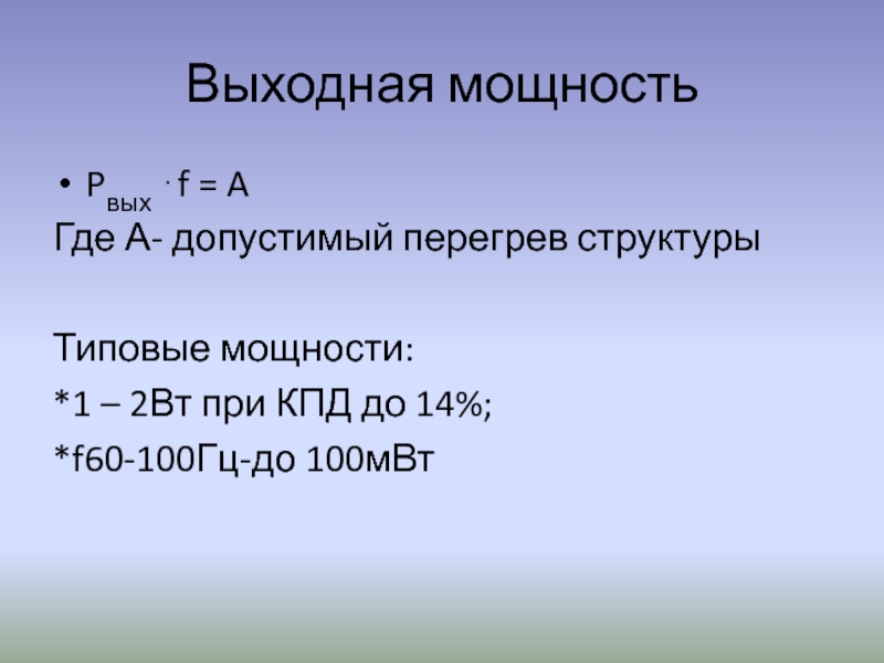 Слайд 21Мощность генерируемых СВЧ - колебаний