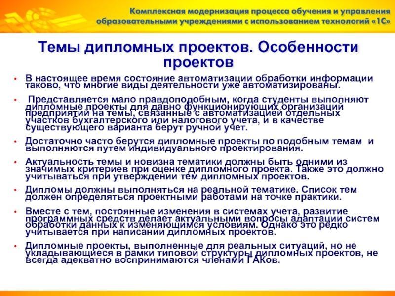 Слайд 9Темы дипломных проектов. Особенности проектов