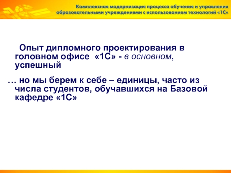 но мы берем к себе – единицы, часто из числа студентов, обучавшихся на Базовой кафедре «1С»