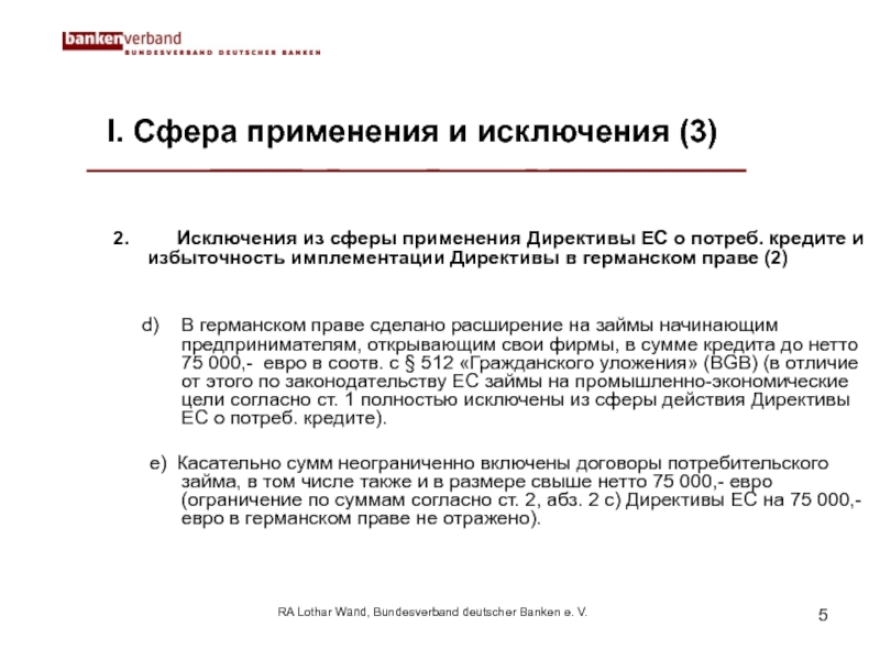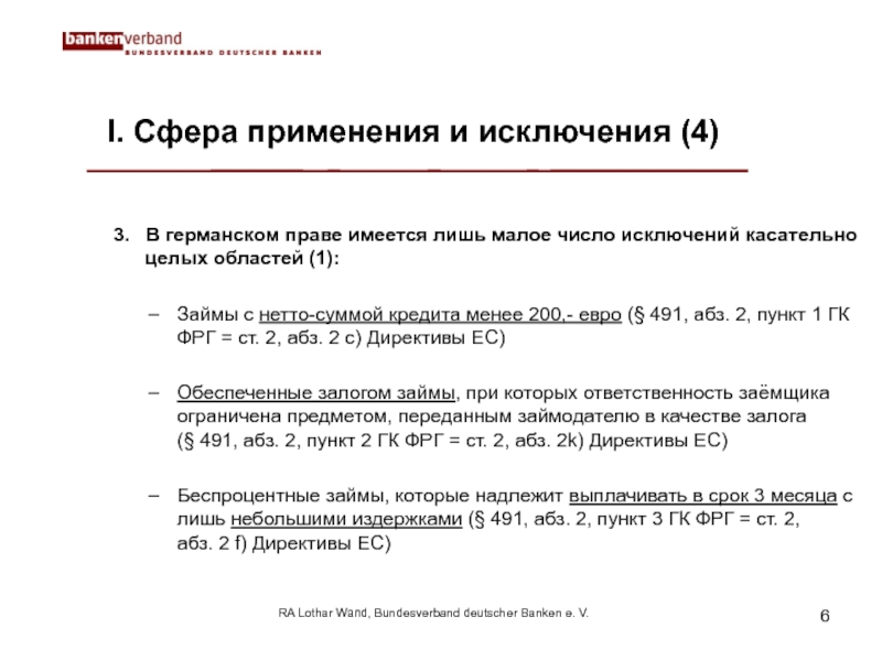 2. Исключения из сферы применения Директивы ЕС о потреб. кредите и избыточность имплементации Директивы в германском праве (2)