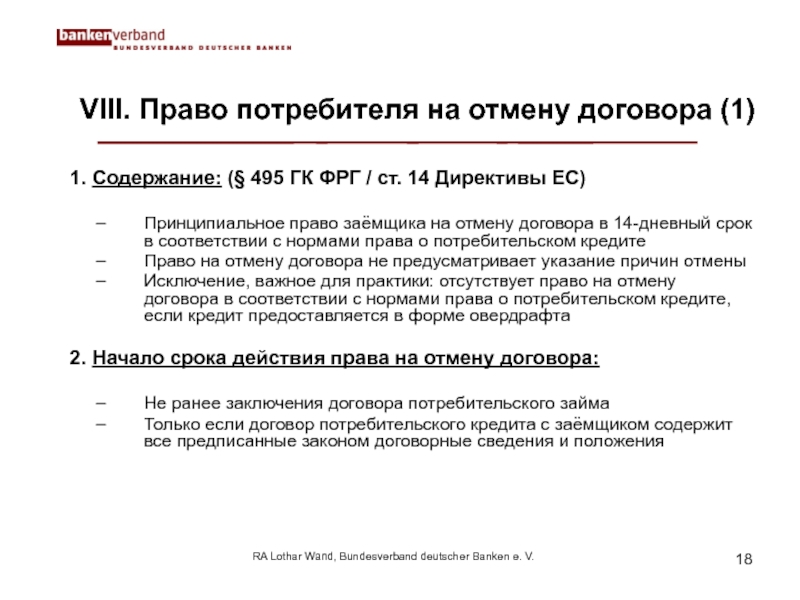 1. Содержание: (§ 495 ГК ФРГ / ст. 14 Директивы ЕС)