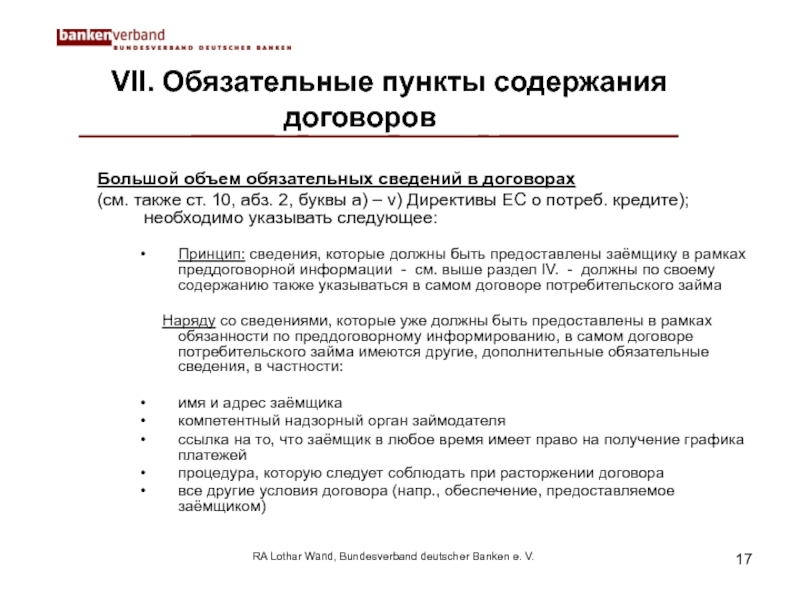 (см. также ст. 10, абз. 2, буквы a) – v) Директивы ЕС о потреб. кредите); необходимо указывать следующее: