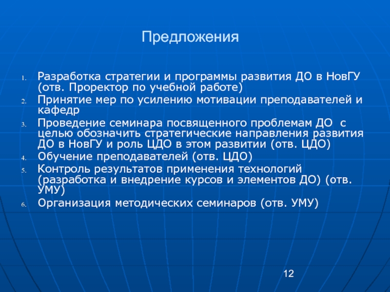 Разработка стратегии и программы развития ДО в НовГУ (отв. Проректор по