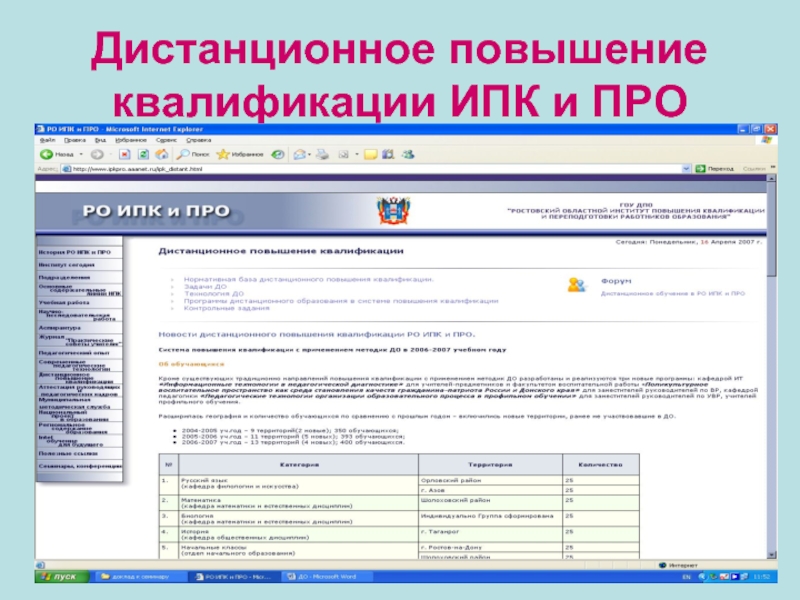 Слайд 7Дистанционное повышение квалификации ИПК и ПРО